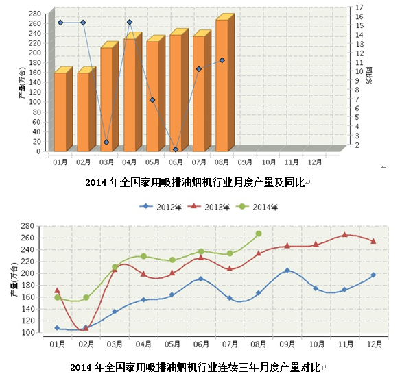 - 8月家用吸排油烟机产量创2014年最高2014/9/17 10:56:46