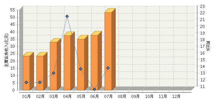 2014年1月~7月,全国文具制造行业累计完成主营业务收入243.37亿元,同比增长14.37%。其中:1月份完成主营业务收入23.43亿元,同比增长12.16%;2月份完成主营业务收入23.43亿元,同比增长12.16%;3月份完成主营业务收入32.9亿元,同比增长13.55%;4月份完成主营业务收入37.45亿元,同比增长22.07%;5月份完成主营业务收入35.07亿元,同比增长14.17%;6月份完成主营业务收入37.71亿元,同比增长11.11%;7月份完成主营业务收入53.39亿元,同比增长14.31%。