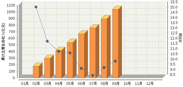 2014年1月~9月,全国自行车制造行业累计完成主营业务收入1036.84亿元,同比增长10.12%,增速显露回升迹象。受助动自行车行业增长放缓的影响,整个行业主营业务收入增速自年初以来逐月放缓,5月份走稳后,连续两个月下降,8月份开始回升,9月份回升至10%。(参见图2)