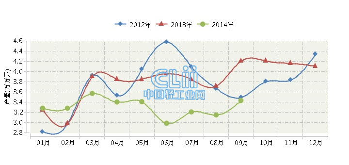 2014年全国白炽灯泡行业连续三年月度产量对比