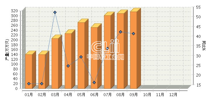 2014年1~9月,全国灯具及照明装置累计产量同比增长14.71%。其中9月份产量同比增长12.11%。