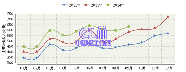 2014年前三季度全国家具行业主营业务收入累计同比增长12.64%