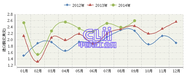 全国家具行业连续三年月度进口额对比