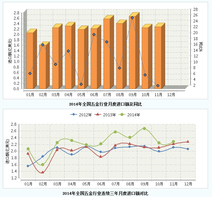 - 2014年11月全国五金行业进口额增速环2014/12/29 17:24:48