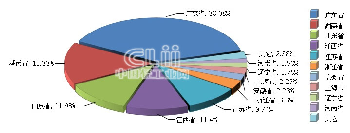 2014年1月~11月,全国运动防护用具制造行业完成累计主营业务收入115.88亿元,同比增长14.81%。广东、湖南、山东、江西、江苏五省共计完成主营业务收入占全国80%以上。其中:广东省完成累计主营业务收入44.13亿元,同比增长9.95%;湖南省完成累计主营业务收入17.77亿元,同比增长25.75%;山东省完成累计主营业务收入13.82亿元,同比增长17.73%;江西省完成累计主营业务收入13.21亿元,同比增长20.56%;江苏省完成累计主营业务收入11.29亿元,同比增长27.73%。