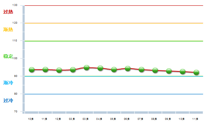 图3 2013.10—2014.11皮革行业景气指数变化态势