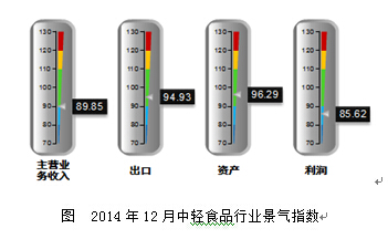 - 2014年中轻食品出口景气指数发布2015/2/11 9:23:02
