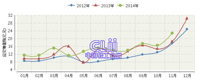 2014年全国家具行业月度应交增值税及同比