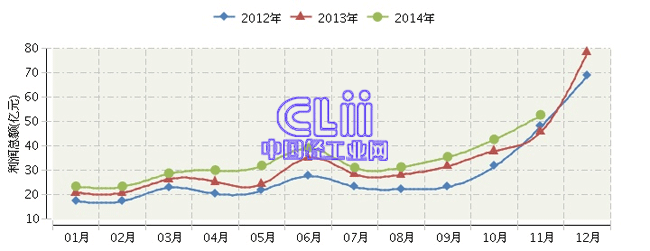 全国家具行业连续三年月度利润总额对比