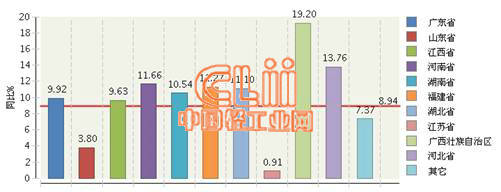 2015年1~3月在全国主要陶瓷产区中,广西以19.2%增速位居前列,山东、江苏均为个位增长,增速居尾。