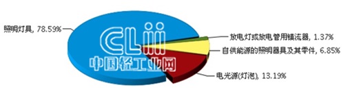 2015年1~3月全国照明行业对东盟累计出口额子行业占比情况