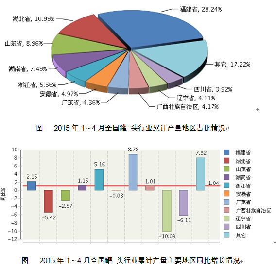 - 2015年1-4月辽宁、四川等多省罐头产2015/6/17 9:08:51