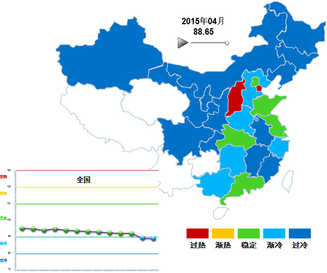 从分地区皮革行业景气指数看,天津、山西过热,安徽、江西、福建、黑龙江、吉林、辽宁、内蒙、甘肃、宁夏、陕西、四川、重庆、新疆景气指数过冷,需特别关注(参见图4)。