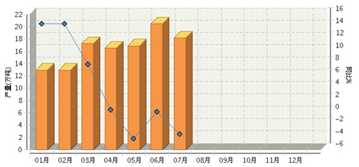 国家统计局数据显示,2015年1月~7月,全国不锈钢日用制品累计完成产量同比增长1.16%,增速较去年同期下降13.1个百分点。一、二季度均出现季度末月产量快速增高,达本季度产量最高值的走势。6月份完成产量为2015年以来的最高值。进入三季度,首月当月产量与增速均有所下降,7月份完成产量同比增长-3.49%,增速再次下降为负增长(见图)。全国不锈钢日用制品94.14% 的产量来自于东部地区,但占比较上月略下降了0.55个百分点。各地区中,只有中部地区保持了正增长,西部和东北部地区增速低于全国平均值,且下降幅度超过30%以上。