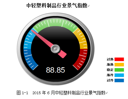 2015年6月份中轻塑料景气指数为88.85,比上月回升0.03点。塑料景气指数在连续三个月回落后止跌回升,但目前仍在蓝色渐冷区间运行。