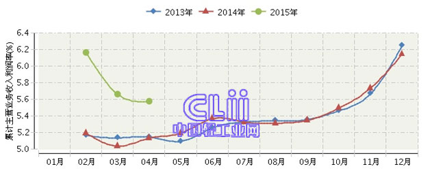 2015年1~4全国家具行业累计主营业务收入利润率为5.58%