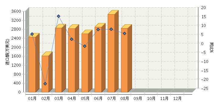 其中:8月份进口额2841.76万美元,同比增长7.58%。