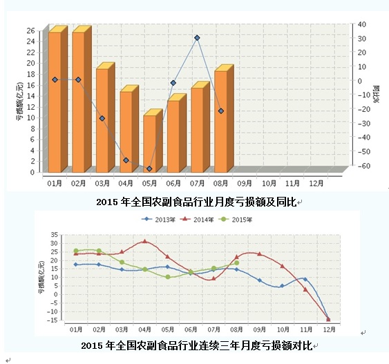 - 2015年1-8月全国农副食品行业亏损额2015/10/16 10:35:03
