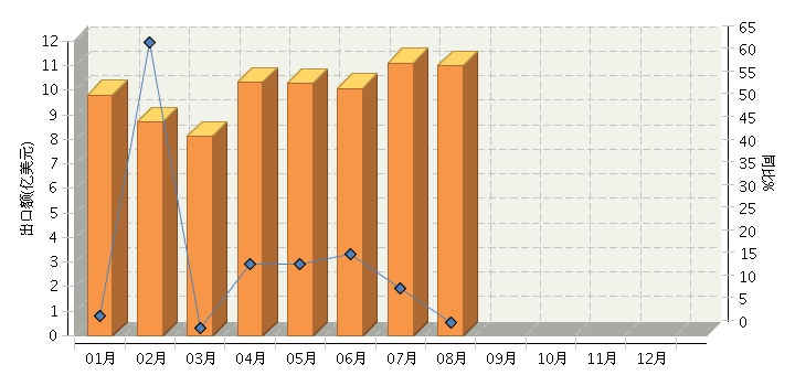 2015年8月我国电池行业出口额同比增长2.87%