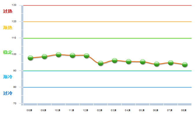 和中国自行车协会联合发布中轻自行车行业景气指数,2015年8月,自行车行业主营业务收入景气指数93.73,比7月份下降1.15。