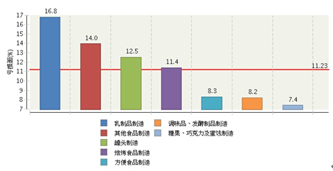 其中,乳制品制造累计亏损面为16.8%,同比增长0.31%;其他食品制造累计亏损面为13.97%,同比增长2.66%;罐头制造累计亏损面为12.53%,同比增长1.71%;焙烤食品制造累计亏损面为11.41%,同比增长0.29%;方便食品制造累计亏损面为8.33%,同比增长0.79%;调味品、发酵制品制造累计亏损面为8.22%,同比增长0.18%;糖果、巧克力及蜜饯制造累计亏损面为7.42%,同比增长1.43%。