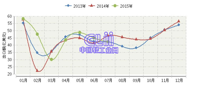 2015年全国家具行业月度出口额及同比