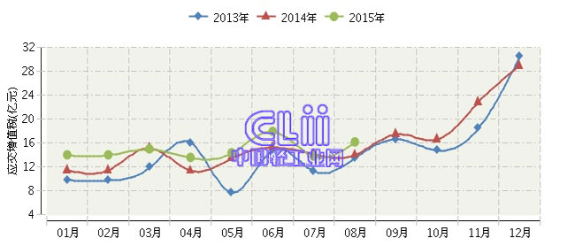 根据国家统计局公布数据:2015年1~8月,全国家具行业的累计应交增值税为118.62亿元,同比增长12.13%。其中:8月份应交增值税同比增长13.11%。