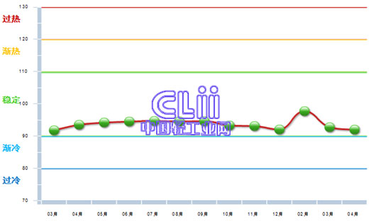 图2 2014年3月~2015年4月中轻家具行业景气指数变化态势