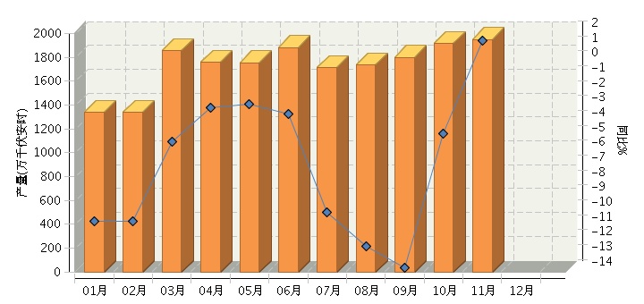 根据国家统计局公布数据,2015年1~11月全国铅酸蓄电池行业累计完成产量同比增长-7.92%。其中:11月份完成产量同比增长1.53%。2015年全国铅酸蓄电池行业月度产量及同比如下图所示。