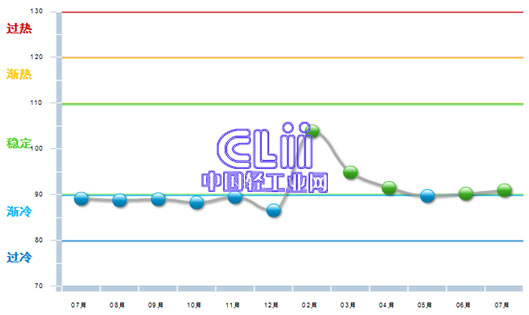 图1 2014年7月~2015年7月家具行业利润景气指数变化态势
