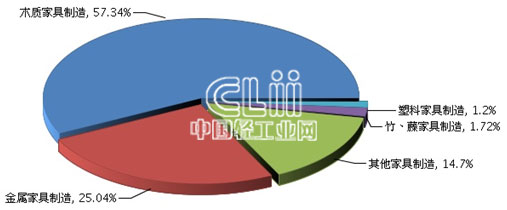 1~7月,家具子行业中木质家具制造业累计利润总额(下同)的占比达到57.34%,金属家具制造业占25.04%,其他家具制造业占14.70%,竹、藤家具制造业占1.72%,塑料家具制造业占1.20%(图4)。