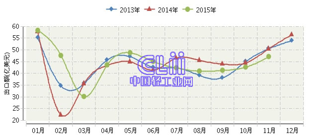 全国家具行业连续三年月度出口额对比