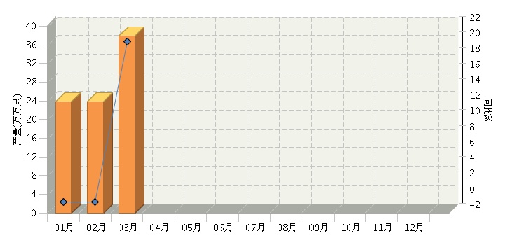 根据国家统计局公布数据,2016年1~3月,全国原电池及原电池组(折R20标准只)行业累计完成产量同比增长4.50%。其中:3月份完成产量同比增长20.02%。2016年全国原电池及原电池组行业月度产量及同比如下图所示。