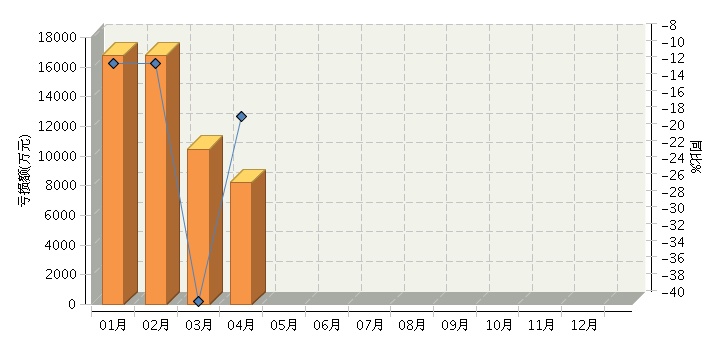 2016年1月~4月,全国玩具行业累计亏损额52,185.50万元,同比下降19.70%。其中:1月份完成亏损额16749.25万元,同比增长-11.09%;2月份完成亏损额16749.25万元,同比增长-11.09%;3月份完成亏损额10467.4万元,同比增长-39.67%;4月份完成亏损额8219.6万元,同比增长-17.48%。