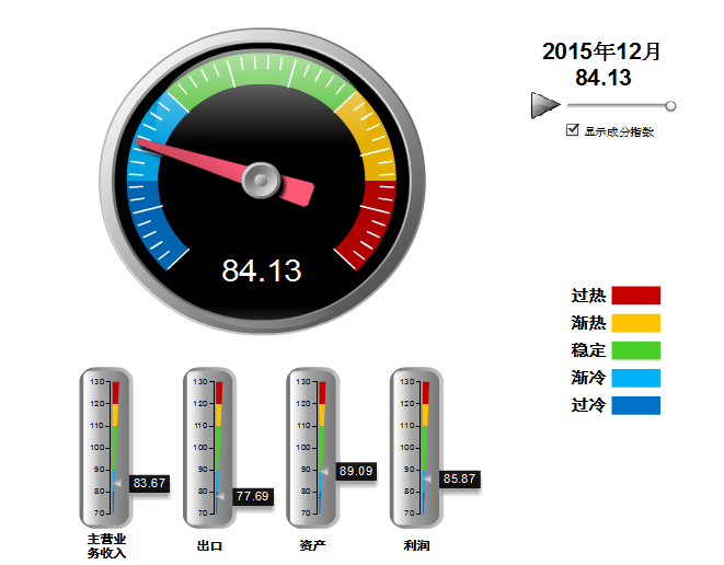 图1 2015.12月工艺美术行业景气指数分指标显示状况