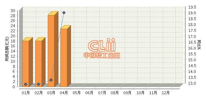 据国家统计局数据显示,2016年1~4月,全国陶瓷行业累计完成利润总额同比增长14.88%。其中:4月份完成利润总额22.78亿元,同比增长19.33%。
