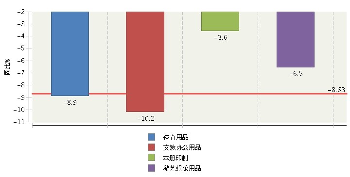 图 2016年1-3月全国文体用品行业各子行业出口增速对比