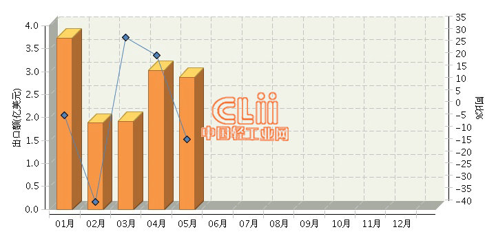 据海关数据显示,2016年1~5月,我国陶瓷制固定卫生设备累计出口额同比下降3.78%。其中:5月份完成出口额2.88亿美元,同比下降11.34%。