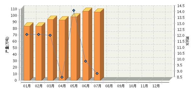 根据国家统计局公布数据,2016年1~7月,全国罐头行业累计完成产量同比增长11.68%。其中:1月份完成产量同比增长12.35%;2月份完成产量同比增长12.35%;3月份完成产量同比增长12.29%;4月份完成产量同比增长8.76%;5月份完成产量同比增长14.38%;6月份完成产量同比增长10.11%;7月份完成产量同比增长9.07%。月度数据走势及同比增长情况如下图所示。