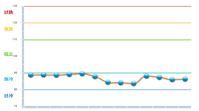 自15年9月中轻指数下降到渐冷区域运行虽然有所回升但还没有达到稳定区域。(参见图2)
