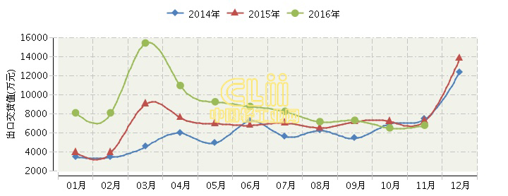 2016年1月~11月,安徽照明灯具制造行业累计完成出口交货值92,547.40万元,同比增长34.64%。其中:11月份完成出口交货值6787.5万元,同比增长-4.18%。