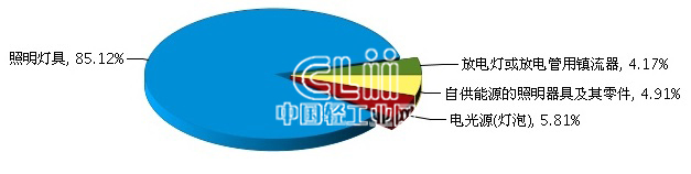 2016年1月~9月全国照明行业对德国累计出口额子行业占比情况