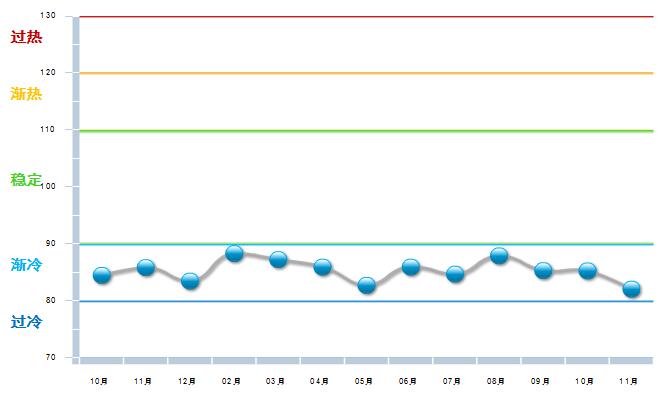 近一年多以来,自行车行业利润景气指数一直处于渐冷区间。进入2016年后,利润指数虽然略有上升,但依然位于渐冷区间,3月份以来逐渐走低,8月份短暂上扬后回落,11月达到全年最低点。(见图1)