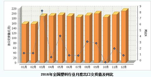 - 2016年塑料制品出口交货值同比增长2.2017/3/6 10:39:31