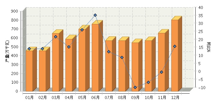 2016年全国太阳能电池行业月度产量及同比