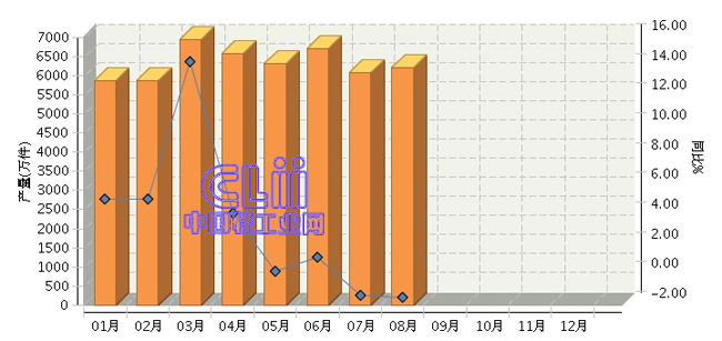 根据国家统计局公布数据:2016年1~8月,全国家具行业累计完成产量51043.71万件,同比增长2.46%。其中:8月份家具产量同比下降1.49%。