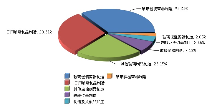 2016年1月~12月,全国玻璃行业完成累计主营业务收入2,434.91亿元,同比增长6.60%。其中,玻璃包装容器制造占34.64%,同比增长2.31%;日用玻璃制品制造占29.31%,同比增长5.35%;其他玻璃制品制造占23.15%,同比增长18.26%;玻璃仪器制造占7.19%,同比增长2.55%;制镜及类似品加工89.13亿元占3.66%,同比增长1.83%;玻璃保温容器制造占2.05%,同比增长5.36%。
