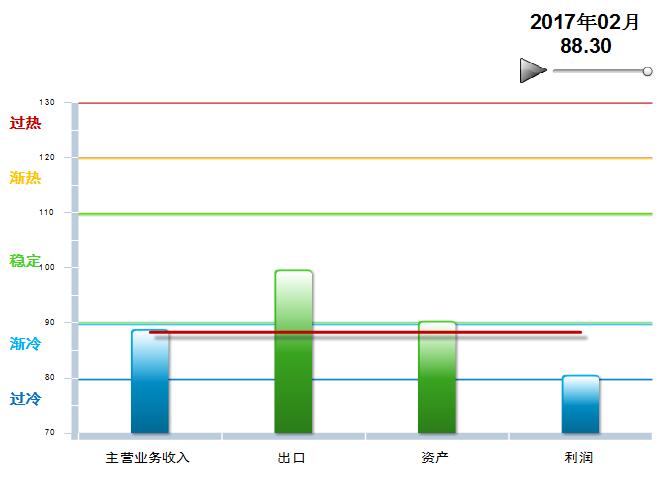 2015年12月至2017年2月,中轻皮革景气指数基本稳定,在90附近小幅波动,处于渐冷提示区运行(参见图3)。