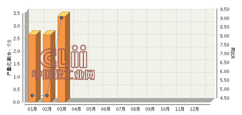 2017年一季度,全国灯具及照明装置行业累计完成产量8.82亿套,同比增长3.25%。其中: 3月份完成产量3.38亿套,同比增长9.25%。