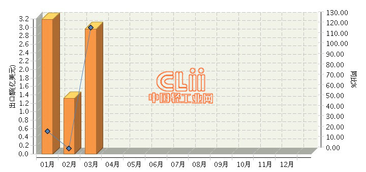 据海关数据显示,2017年1~3月,全国陶瓷制固定卫生设备累计出口同比增长42.26%。其中:3月份完成出口额2.96亿美元,同比增长121.6%。